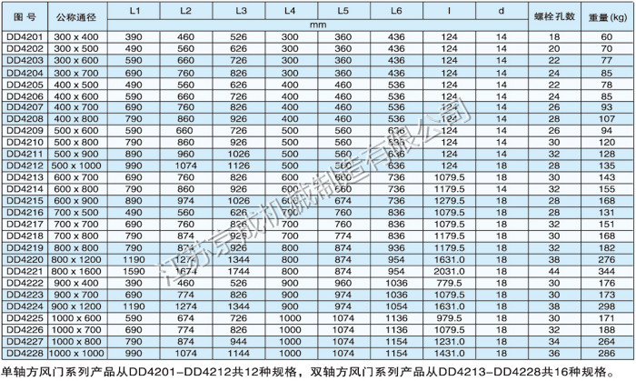 單軸、雙軸方風(fēng)門系列產(chǎn)品尺寸及理論重量