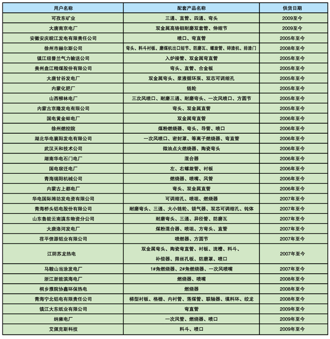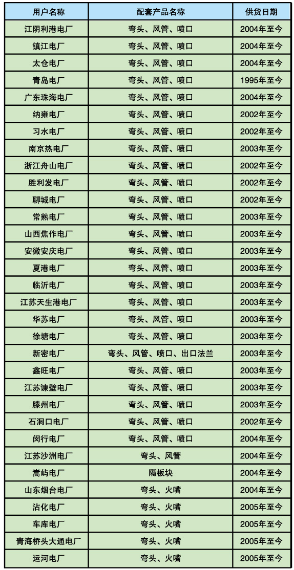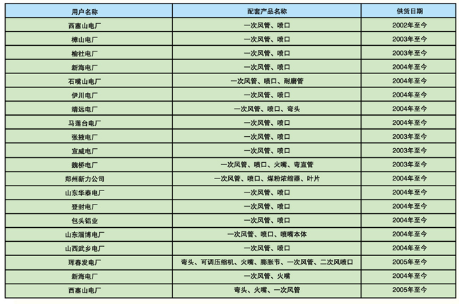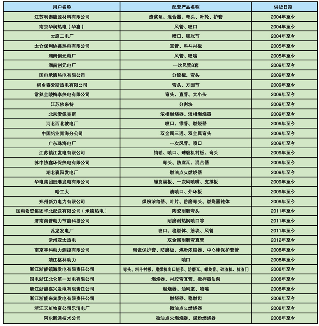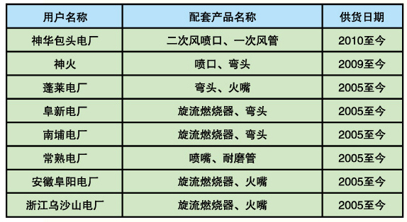 上海鍋爐廠配套項目的產品業(yè)績