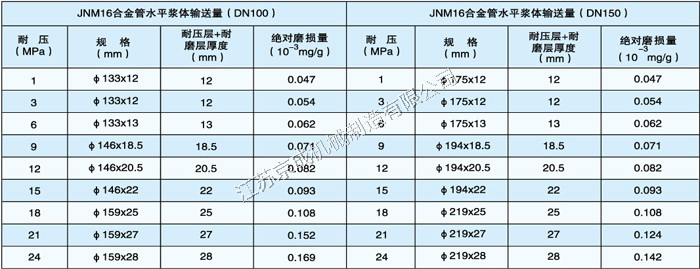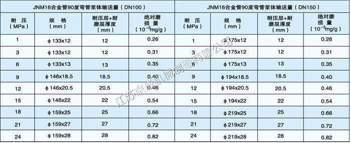 注:除表中所列規(guī)格尺寸外,高壓耐磨管件壁厚可根據(jù)磨損率和實(shí)際漿體輸送量增減。