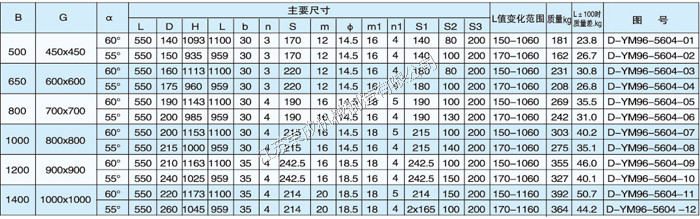 說明:1、表中尺寸和質量系按L=550毫米、β=18°編制;2、圖中已包括上部聯(lián)接用緊固件;3、管體采用耐磨材料整體鑄造。